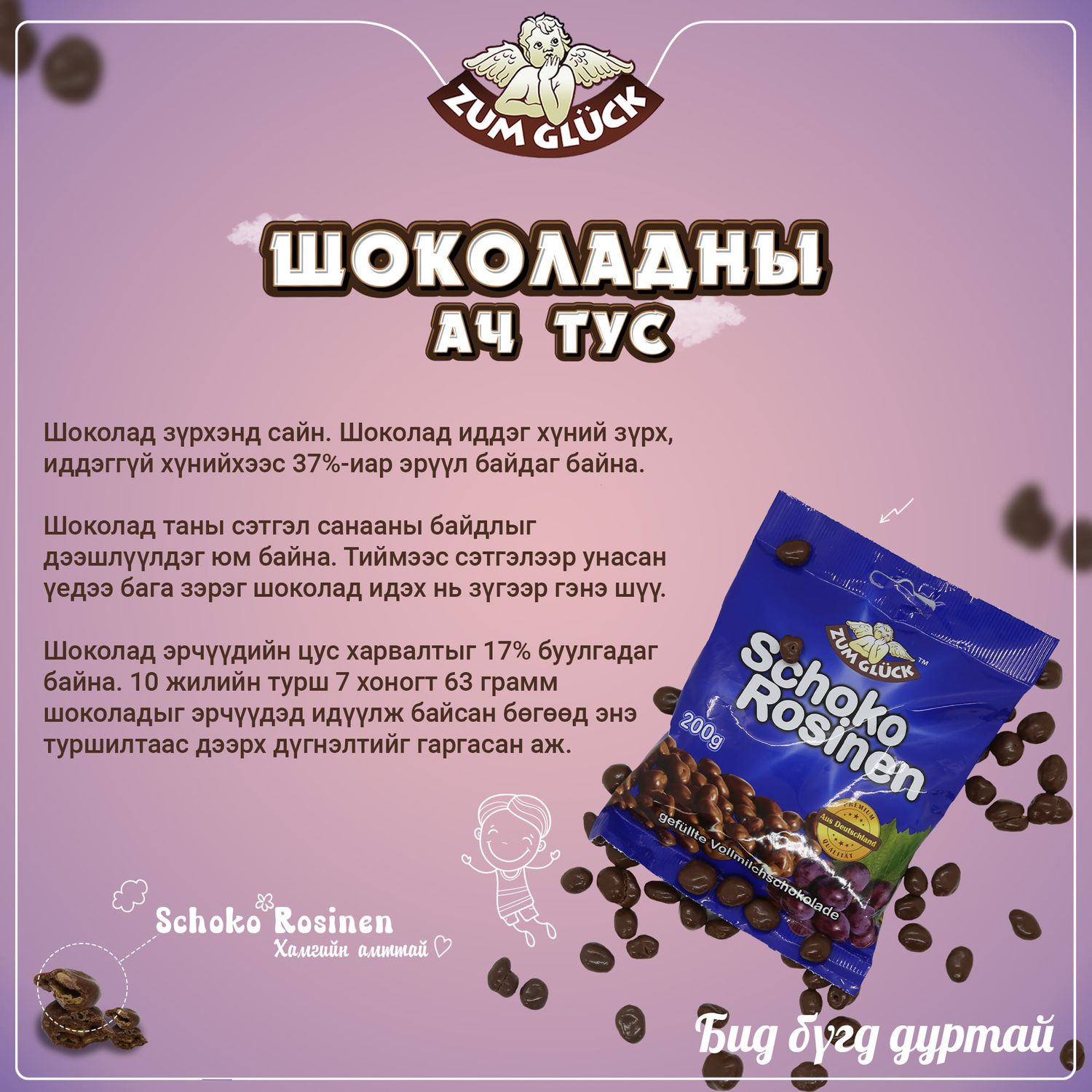 Үзэмтэй үрэл Schoko Rosinen 200гр ууттай DEU