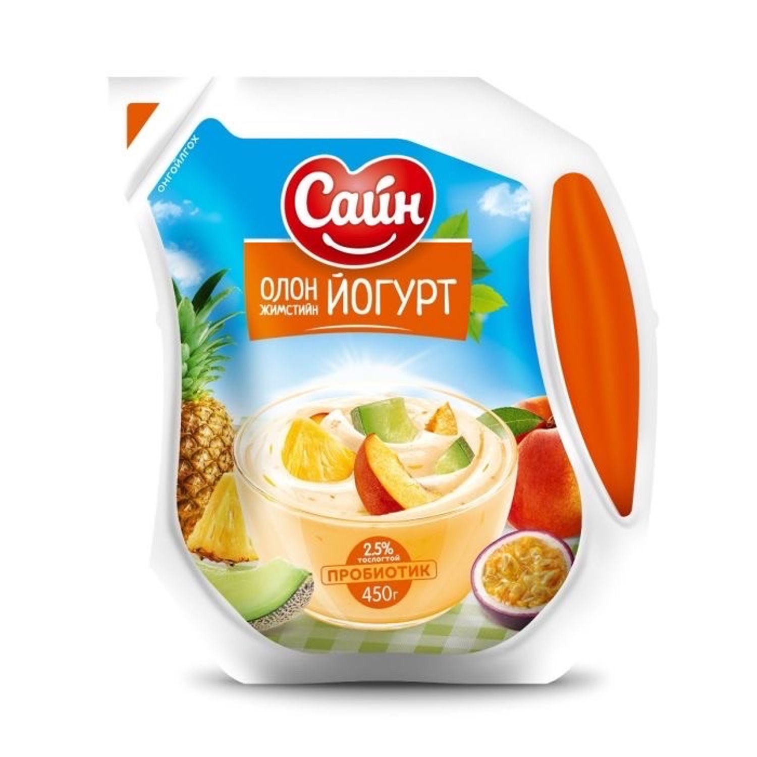 Орц найрлага : А: Үнээний сүү, хатаамал сүү, зөөлрүүлсэн ус, өтгөрүүлэгч(E440), сүүн хүчлийн бичил биетний цэвэр өсгөврийн хөрөнгө, Bifidobacterium, L.acidophilus, Str.thermophilus, L.bulgaricus